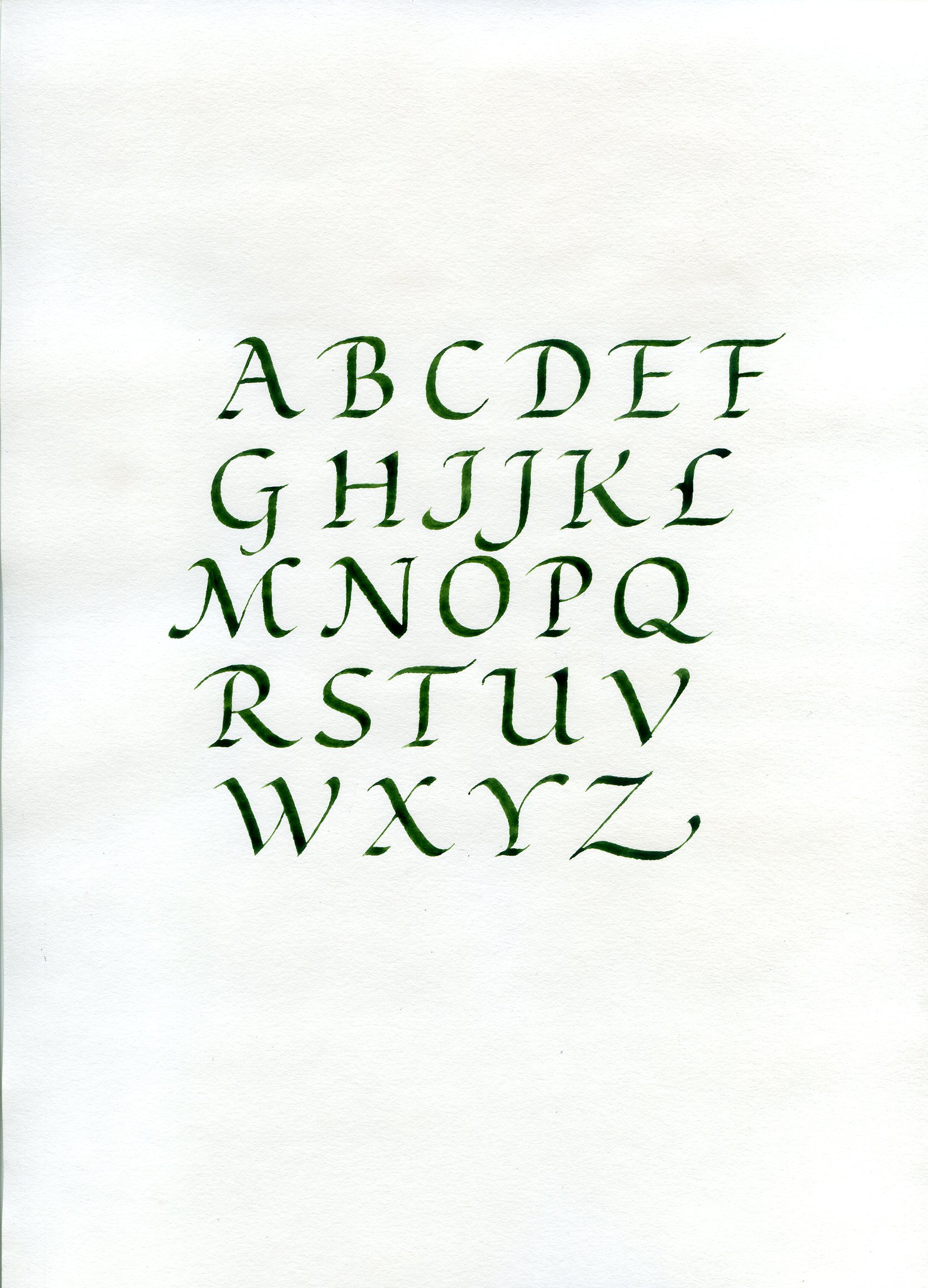 C’est une écriture ronde et douce, très agréable à tracer et à lire. Étant composée uniquement de majuscules, c’est une graphie que l’on maîtrise assez rapidement et qui nous donne beaucoup de satisfaction. Elle convient parfaitement aux personnes débutantes car ses lettres se tracent en peu de traits.