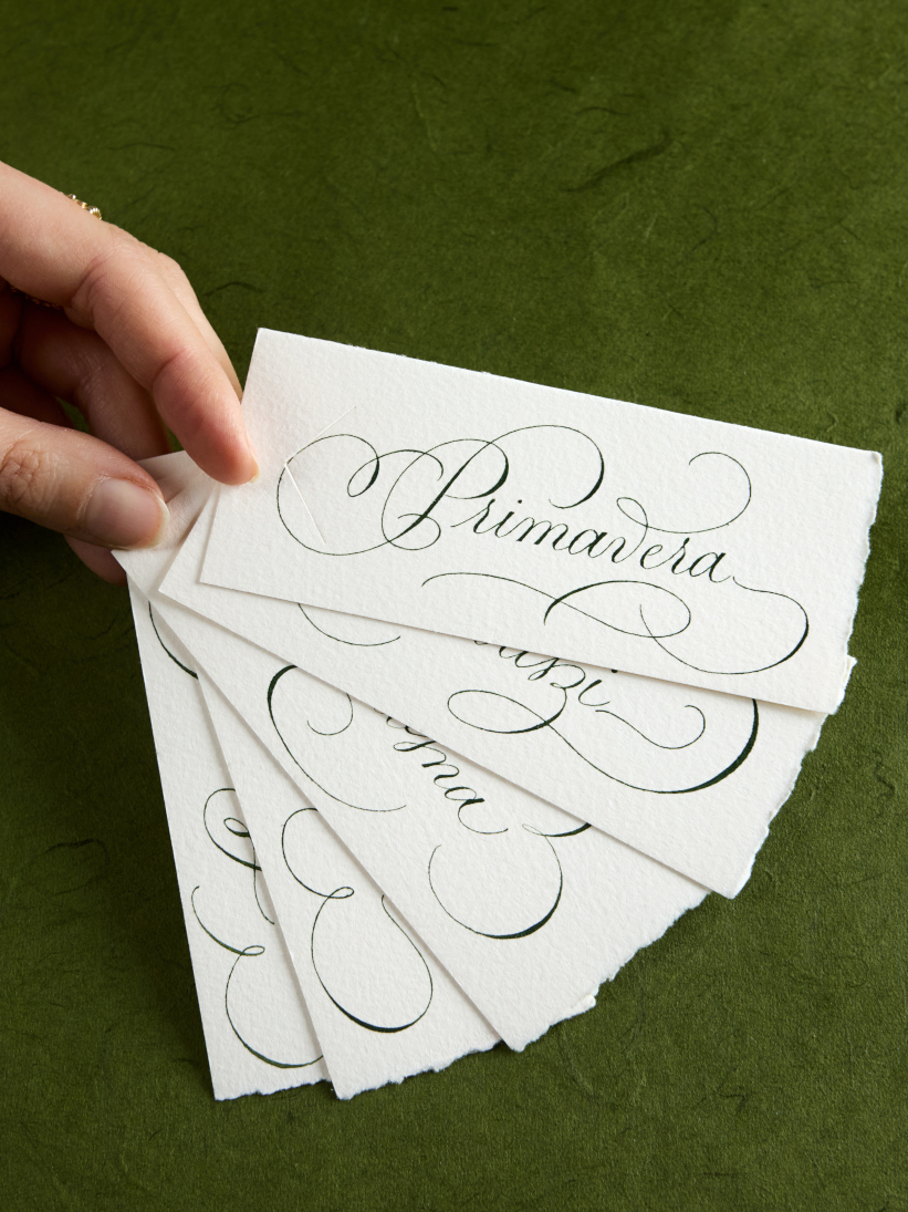 Vous souhaitez vous rendre inoubliables auprès de votre clientèle? Que ce soit sur votre papeterie accompagnant un achat, sur le produit lui-même ou son packaging, la calligraphie peut être effectuée sur un large choix de matériaux (papier, bois, plastique, verre…), à l'aide de différentes techniques, telle que la gravure, le marquage à chaud ou la peinture.